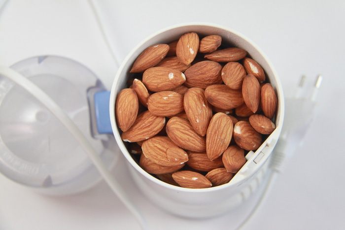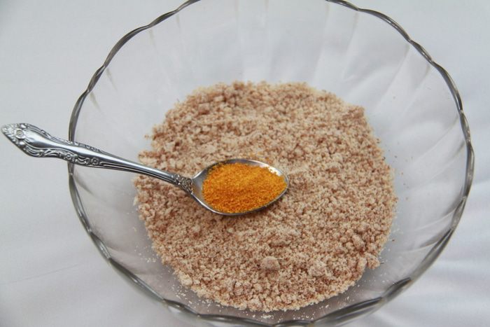 Если нет миндальной муки - не беда. Измельчить миндаль (100 г) в кофемолке.