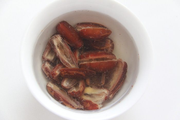 75 г фиников - это примерно 12 штук. Из фиников удалить косточки, замочить финики в холодной воде на 1 час.