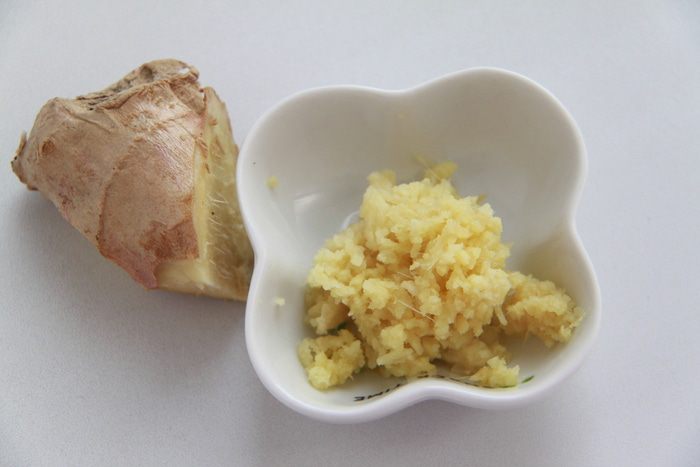 Свежий имбирь (20 г) натереть на мелкой терке,