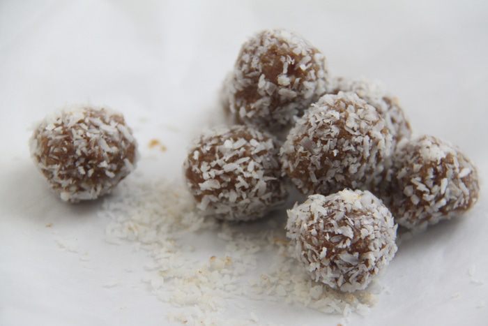 Если по каким-то причинам вы не хотите шоколадных конфет, можно сделать конфеты в кокосовой стружке. Из миндально-имбирной массы сформировать шарики, обвалять их в кокосовой стружке. Дать подсохнуть пару часов.