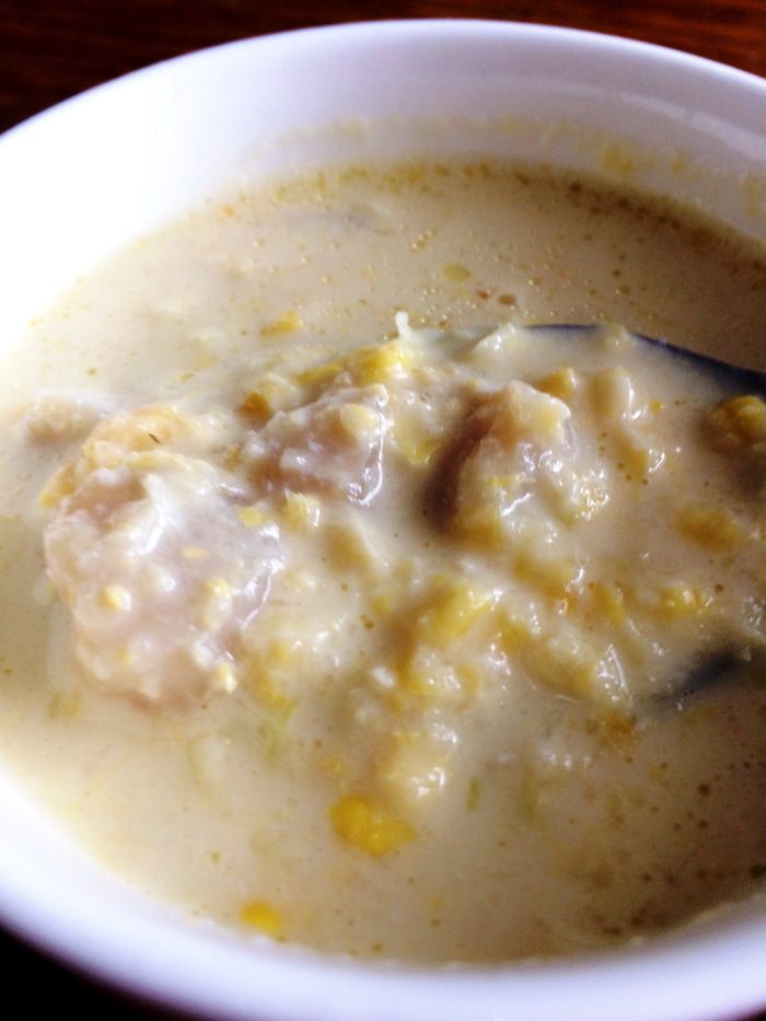 Открываем большую (или две маленькие) банку сахарной кукурузы и отправляем ее в кастрюлю к луку. Заливаем бульоном (1 — 1,5 л), чтобы покрыть кукурузу, и туда же жирные сливки или сметану, как в моем случае. Перемешиваем, накрываем крышкой, убавляем огонь и томим суп минут 20.