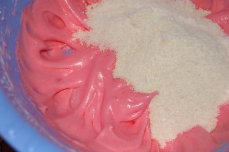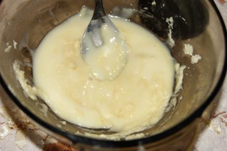 К белковой смеси добавить миндальную в три приема.