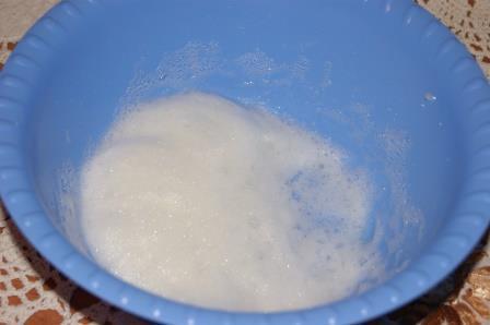 Белок взбить до пены.