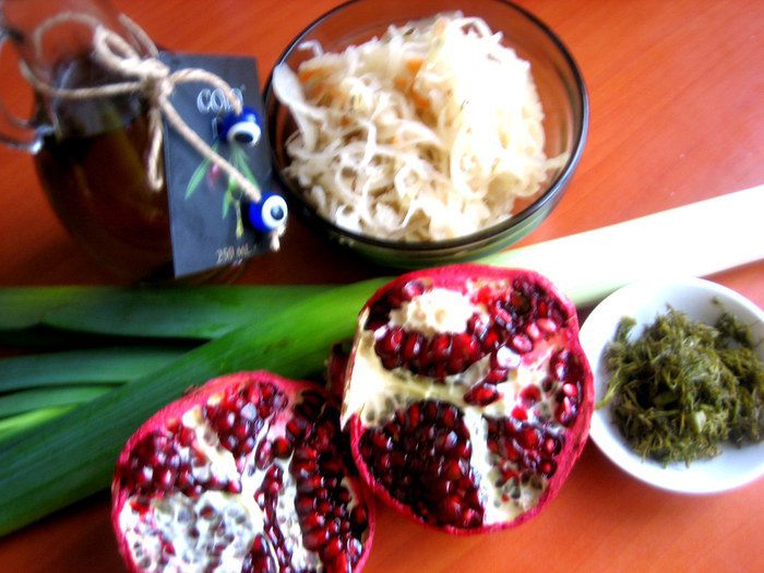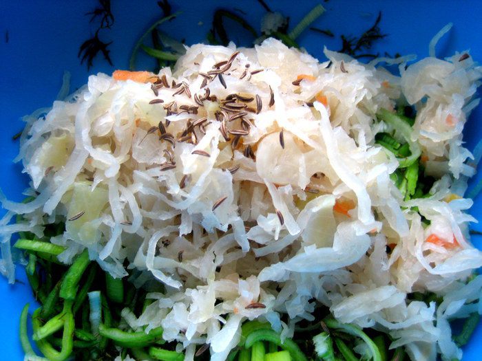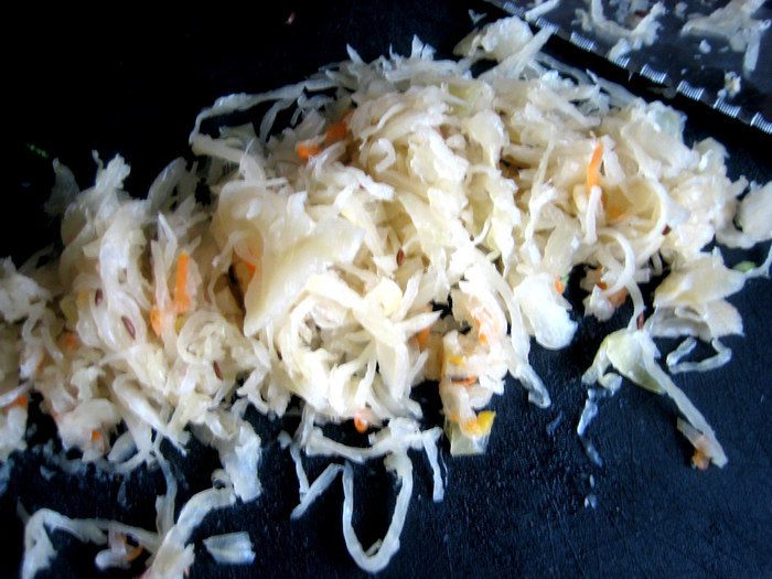 Квашеную капусту я немного нарезала для удобства.