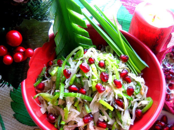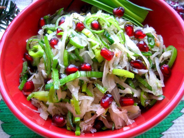 Кстати,постояв немного,салатик станет ещё вкуснее,а зёрна граната напоминают северную клюкву))) Да здравствует север+восток)))