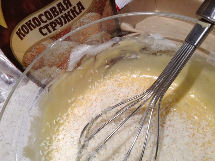 Добавить кокосовую стружку.