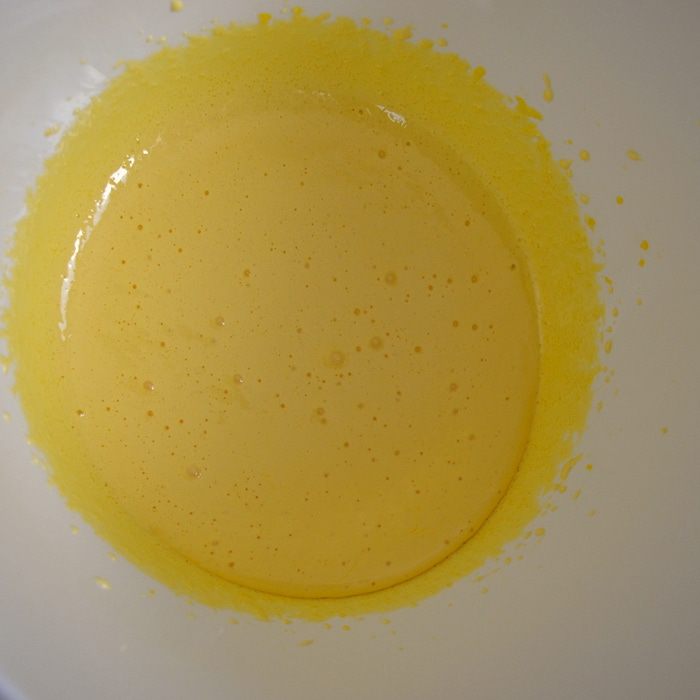 С помощью ручного миксера взбить желтки с сахаром до увеличения массы в объеме и растворения сахара.