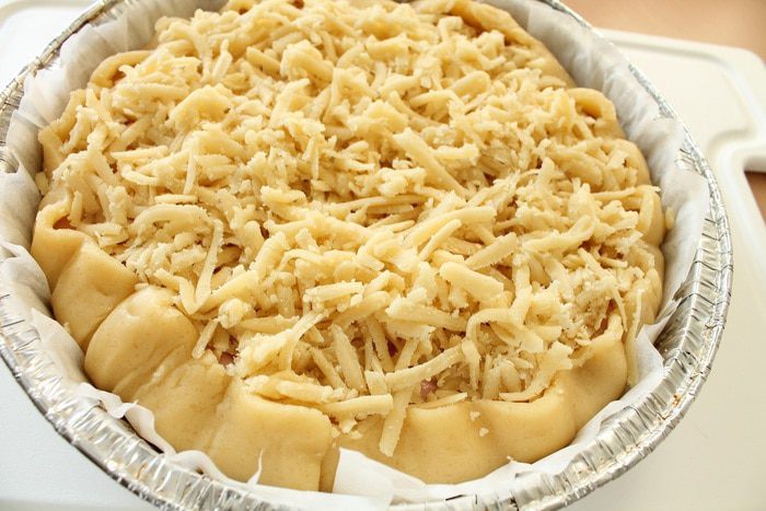 Тесто: Сливочное масло комнатной температуры растереть с сахаром, солью, 1 яйцом до однородной массы, постепенно добавить просеянную муку, замесить тесто. Отделить примерно четвертую часть, завернуть в пленку и убрать в морозильную камеру, а остальное тесто тоже завернуть в пленку и убрать в холодильник на 30-35 мин.