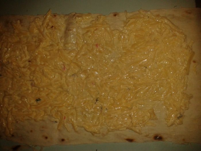1-я начинка. Натереть на крупной терке сыр, чеснок, затем добавить майонез и намазать на на лаваш.