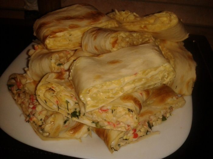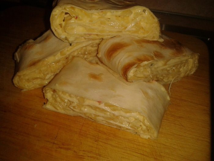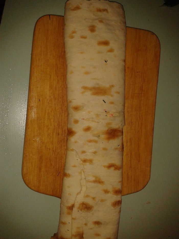 Завернуть лаваш в виде трубочки.