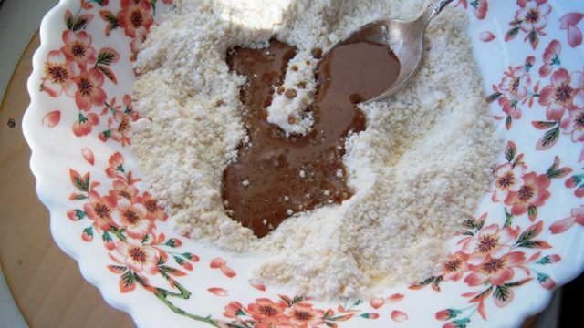 Добавить ликер, у меня свой https://www.edimdoma.ru/retsepty/93204-shokoladnyy-likerе перемешать, влить 1 ложку сока лимона. Смотрите по консистенции, вам может понадобиться еще 1 полная столовая ложка или немного поменьше.