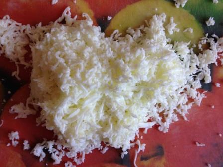 Сварить яйца и натереть на мелкой терке отдельно белки и отдельно желтки.