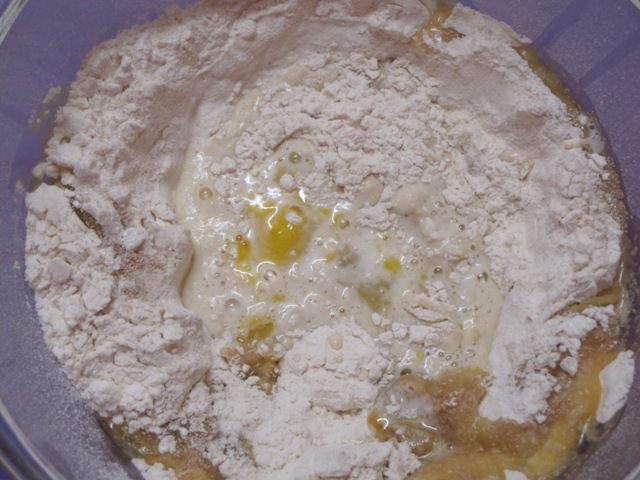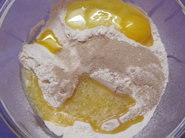 Поставить пирог на расстойку на 30 минут. Смазать пирог слегка взбитым желтком.