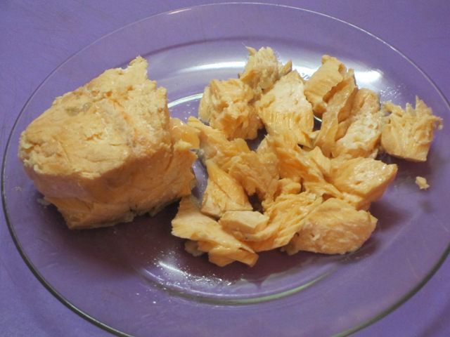 Достать из духовки, смазать сливочным маслом. Накрыть бумажным полотенцем. Слегка остудить. Нарезать на кусочки.