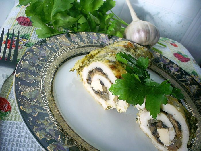Очень вкусное блюда, способное поднять настроение в будний день или стать изюминкой праздничного стола. Такими рулетиками можно сытно накормить семью, а можно удивлять и соблазнять желанных гостей))) Мясо получается очень нежное и гармонично сочетается с грибной начинкой и плавленным сыром. А мой любимый сметанно-чесночный соус идеально дополняет курицу, делает ее мягкой, сочной и ароматной. В горячем виде вместе с соусом рулетики выступают в качестве основного блюда. А вот если подать их холодными, порезанными на порционные кусочки - они превращаются в оригинальную закуску. Есть или не есть и в каком виде - решать вам. А пока угощайтесь!!!