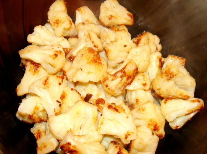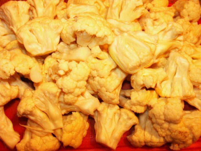 Капусту разделить на мелкие соцветия. Вскипятить воду с солью, погрузить туда капусту, подождать пока закипит, слить воду.