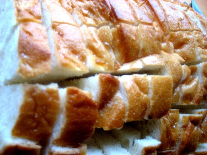 Нужен не разрезанный батон или булка... но у нас почти все продают разрезанные, но ничего страшного... Если нашли целый, надрезаем на порции не до конца!