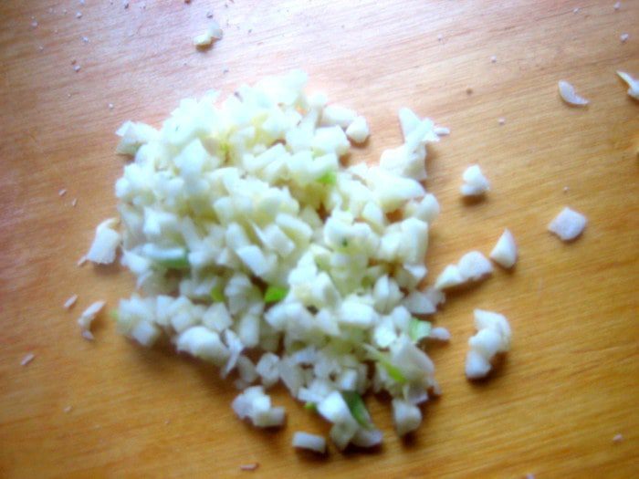 Чеснок измельчить.