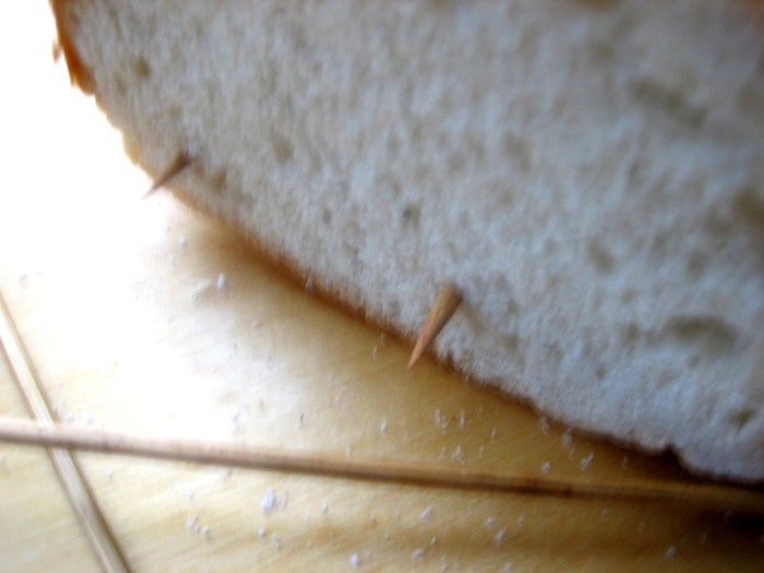 Я свои ломти скрепила внизу двумя шпажками, чтобы не развалились раньше времени)))