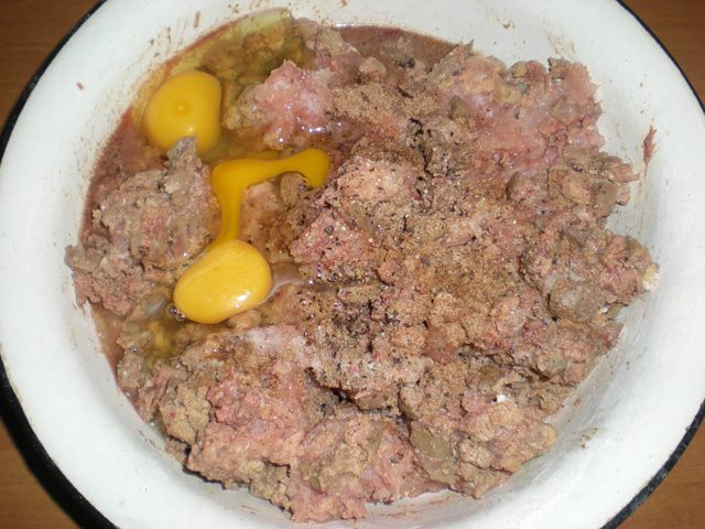 Теперь добавьте яйца, соль, перец и размешайте фарш до однородной консистенции.
