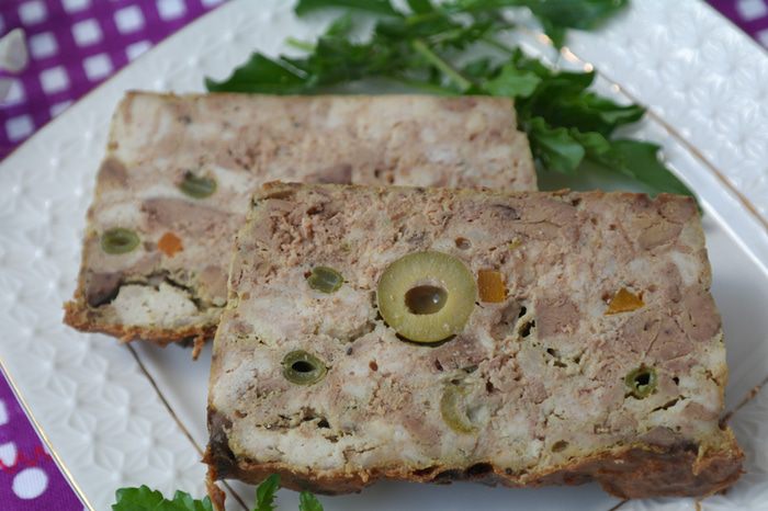 Подавать террин нужно в холодном виде. Можно подать с овощами, салатом, а можно как закуску.