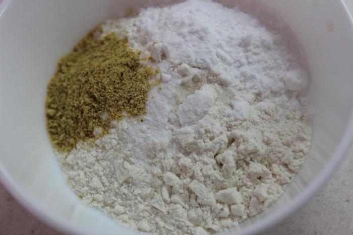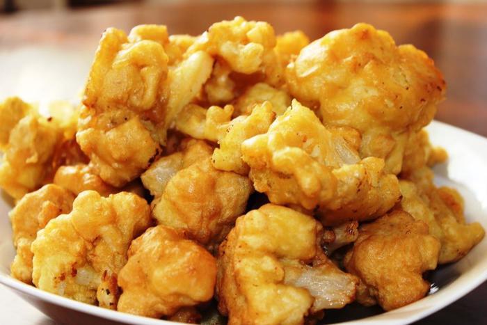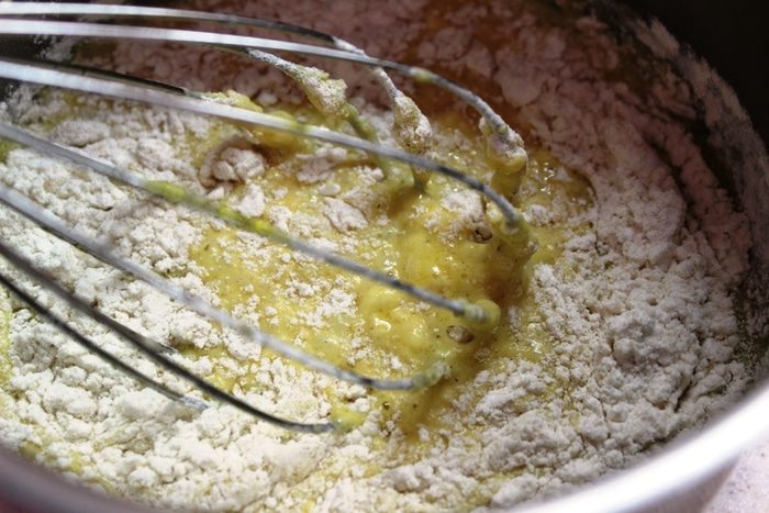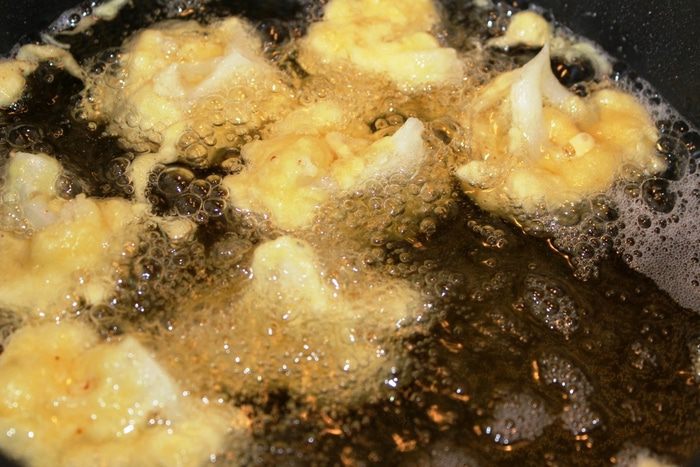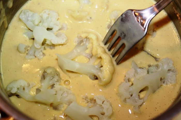 Взбить венчиком яйца, добавить сливки и сухую смесь...все хорошенько вымешать, чтобы не было комочков. Количество муки необходимо регулировать самим (у меня был стакан, граммы я указала приблизительно), возможно добавить еще сливки, чтобы кляр получился не совсем густым, но в то же время не стекал с кусочков капусты.