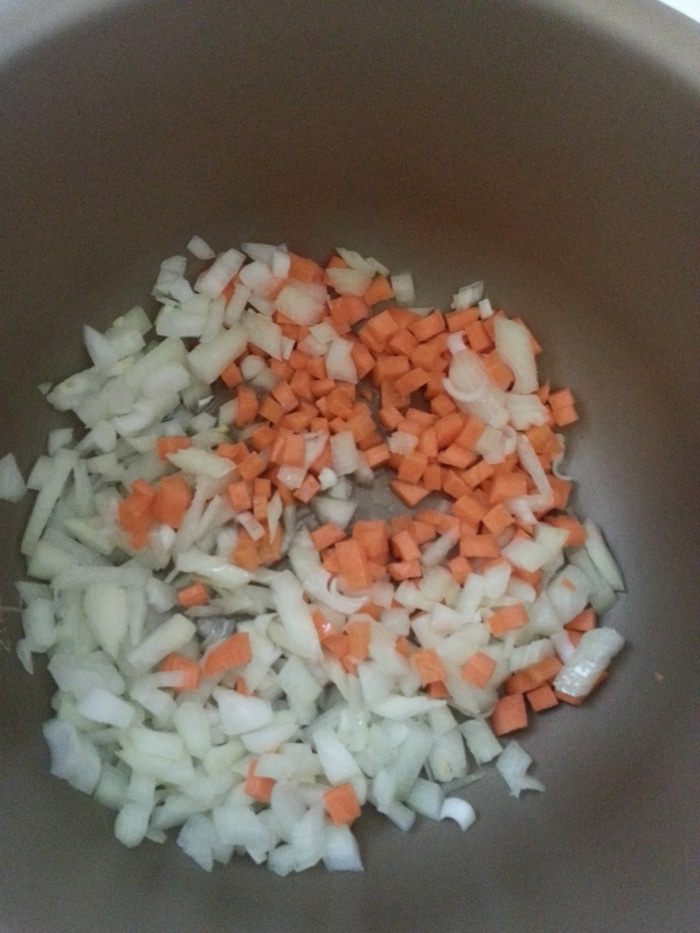 Лук нарезаем, морковь натираем на крупной терке, обжариваем на рафинированном растительном масле.