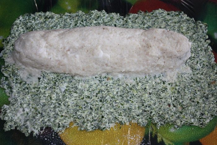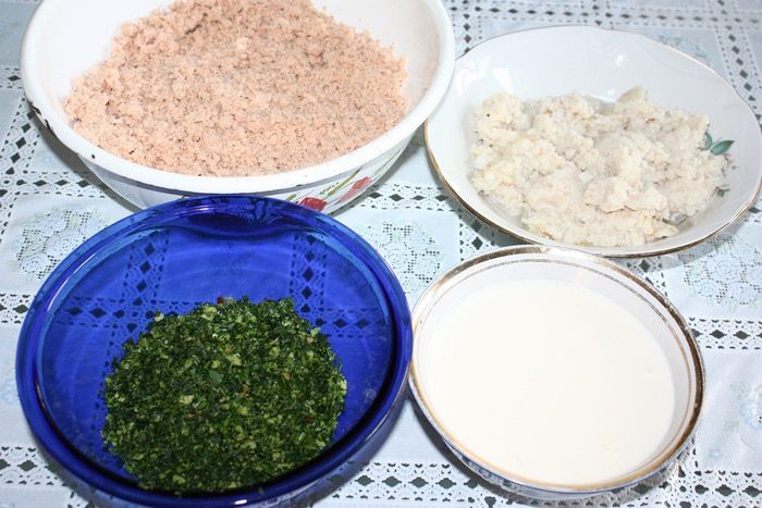 Филе горбуши отварить с лавровым листом, луком, солью, перцем горошком до полной готовности. Филе хека отварить с лавровым листом, солью и перцем. Рыбу варим в разных кастрюлях. Дать остыть. Желатин замочить в остывшем бульоне бульоне (250 мл). Готовый желатин смешать с майонезом, добавить лимонный сок. Горбушу и хек взбить в блендере (отдельно), добавить соль и перец по вкусу. Петрушку мелко нарезать