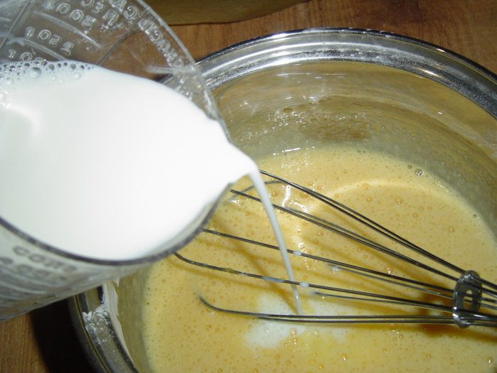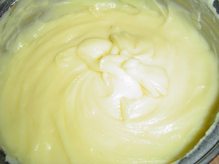 Вливаем оставшееся молоко и ставим на сильный огонь, доводим до кипения при помешивании, а когда со дна будут подниматься пузырьки уменьшить огонь и прокипятить пару минут постоянно помешивая. Затем убрать крем с огня, добавить масло и ванилин, перемешать и остудить.