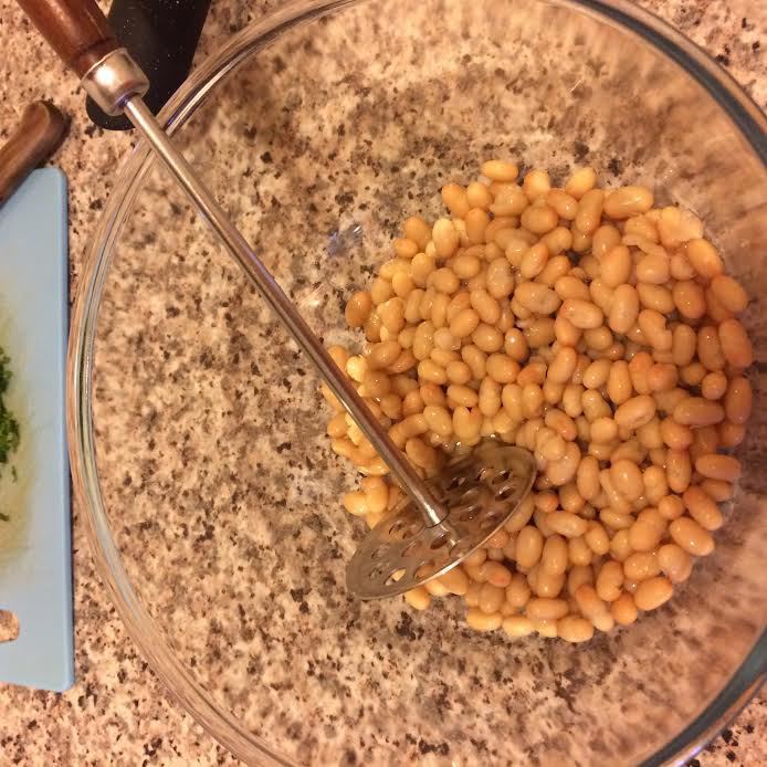 В фасоль добавить сок лимона и размять.