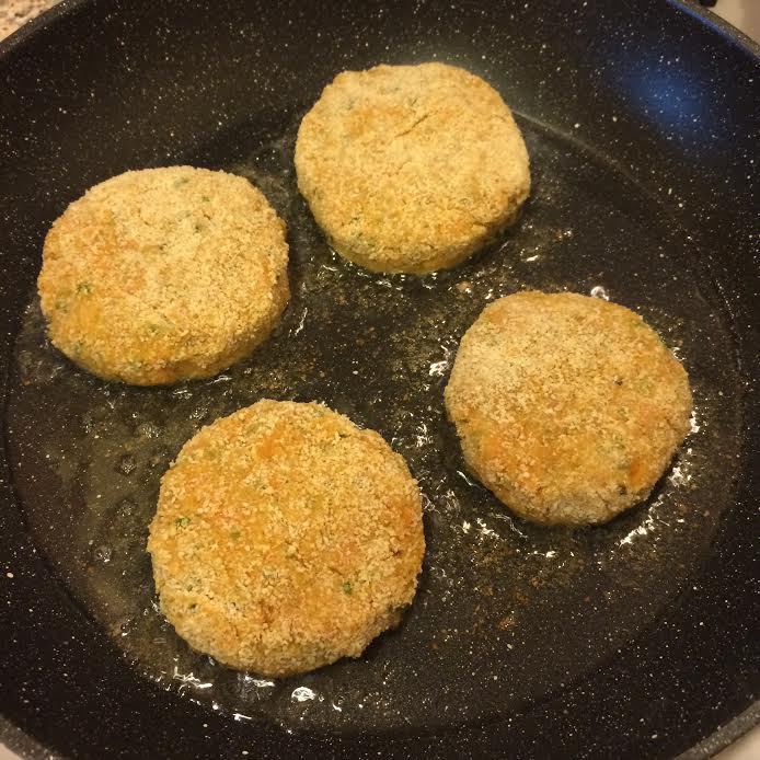 Сформировать котлеты и обвалять в сухарях. Переложить на доску, накрыть пленкой и отправить в холодильник на 1,5 — 2 часа.