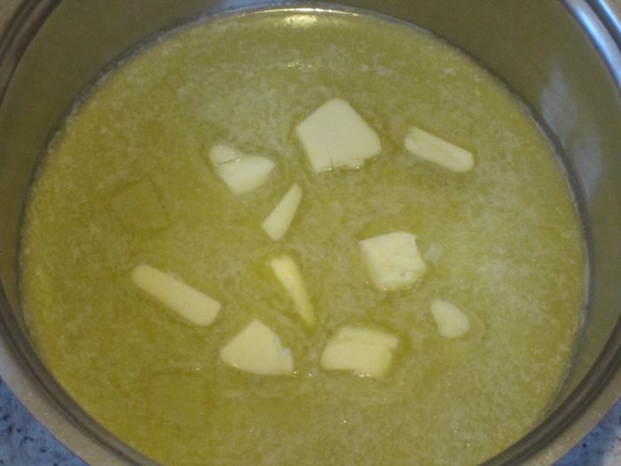 Сливочное масло растопить на водяной бане, остудить.