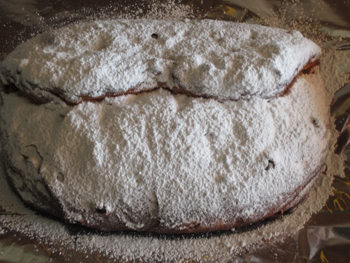 Этот штоллен я приготовила 2 недели назад!!! Вчера попробовали кусочек (надеюсь,что сегодня он не исчезнет)...безумно вкусный!! А какой волшебный аромат Рождества наполнит ваш дом!!Рекомендую!!