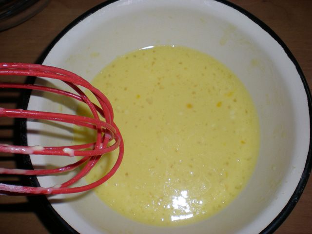 Яйца взбить с молоком, добавив щепотку соли. Всыпать муку, размешать, чтобы не было комочков, и влить 1 ст.л. растительного масла в тесто. Я масло лью сразу в тесто, а блинную сковороду потом не смазываю.