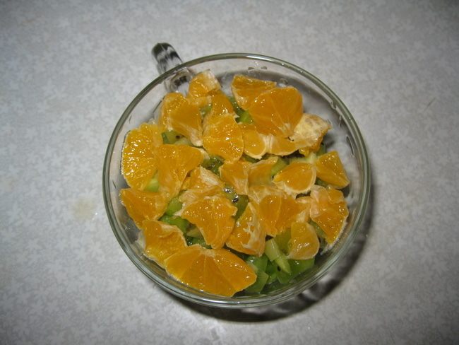 4-й слой: чистим мандарин. Режим кусочками.