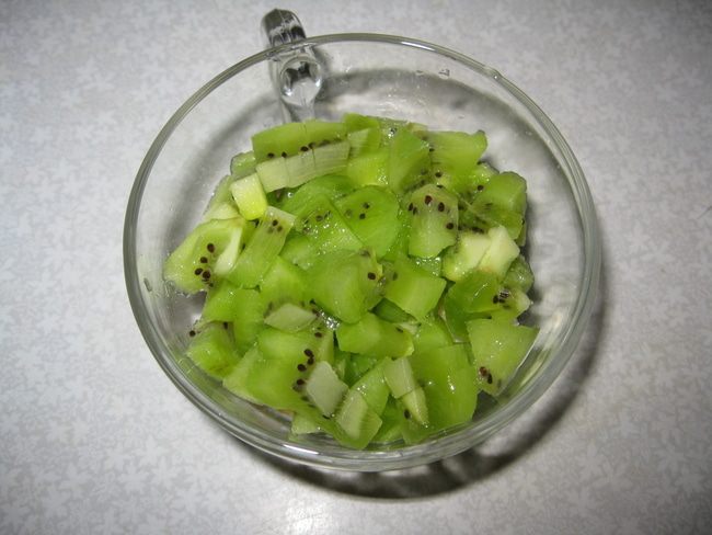 2-й слой: чистим и режим киви кубиками.