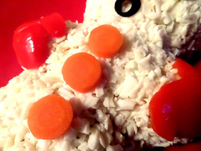 Кстати, снеговика такого можно приготовить заранее, он только станет лучше,когда настоится)))