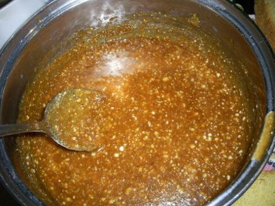 Снимаем сотейник с огня и постепенно, все время помешивая вливаем теплое молоко. Делать это нужно очень аккуратно, так как карамель будет сильно пениться и брызгаться. Если влить сразу все молоко, карамель соберется в комок. Ничего страшного - возвращаем сотейник на огонь и помешиваем до полного растворения карамели. Затем снимаем готовую карамель с огня и добавляем масло. Перемешиваем до однородного состояния.