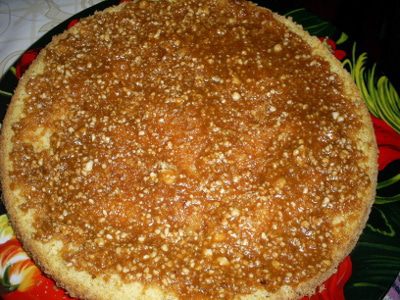 Займемся карамельной прослойкой. Сахар высыпаем в сотейник или сковороду с толстым дном и начинаем нагревать на среднем огне. Сахар начнет таять сначала возле стенок посуды. Желательно его ничем не мешать, можно слегка встряхнуть сотейник, чтобы сахар прогревался более равномерно. Держим на огне до получения золотисто-янтарного цвета. Не передержите, а то будет горчить и пахнуть жженым сахаром.