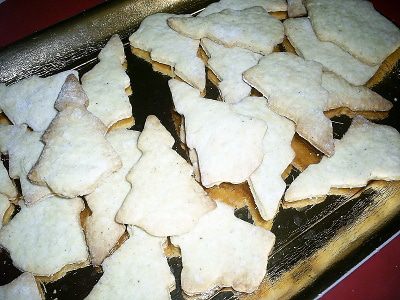В этом году я решила опробовать новые формочки для печенья и заодно порадовать доченьку забавными зверушками. И в это же время наткнулась в Интернете на англоязычный журнал с идеями оформления рождественской выпечки. Особенно в душу мне запали елочки и я решила попробовать и у себя дома "вырастить еловый лес".