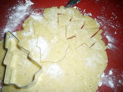 Тесто мы готовили вместе с доченькой, она же помогала и вырезать елочки и выкладывать на противень. С деловым видом бегала вокруг духовки и говорила:"Хватит, поджарились уже"
