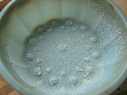 Смазать форму маслом, присыпать сахаром,выстелить дно формы нарезанными фруктами киви.