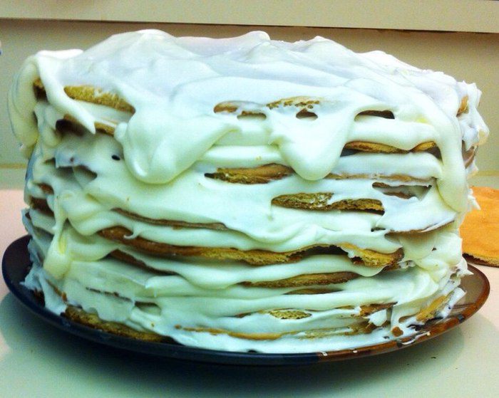 Hа водяной бане растопить cливочное масло, добавить сахар, воду и прогреть до полного растворения сахара.