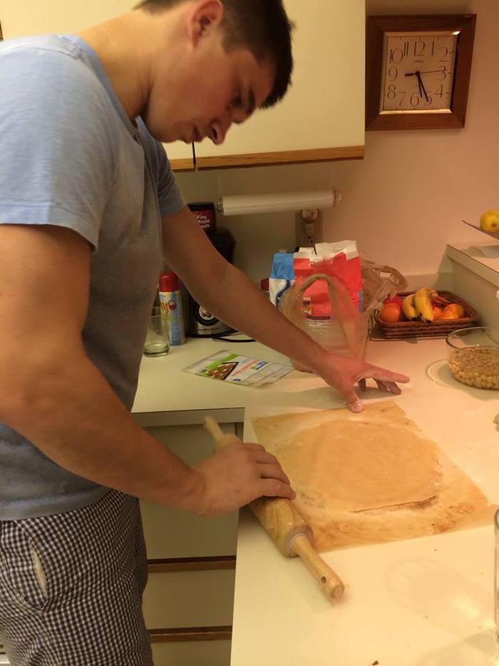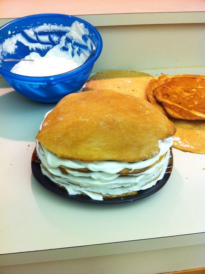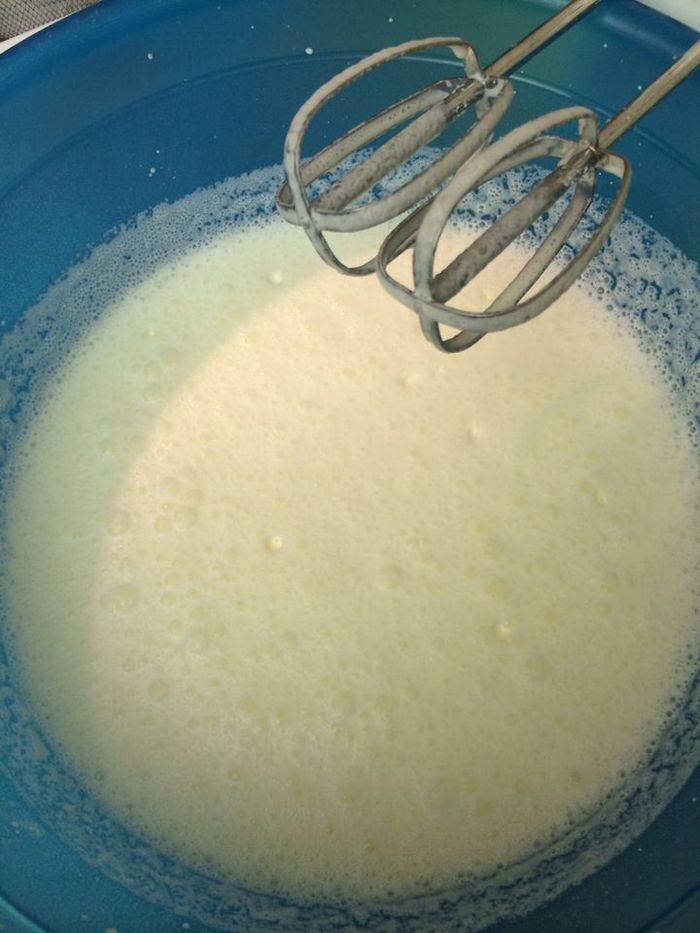 Снять с бани и в горячую массу добавить 2 стакана муки, хорошо размешать венчиком, накрыть и оставить остывать до чуть тёплого состояния.