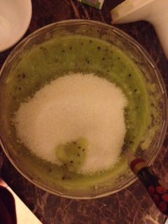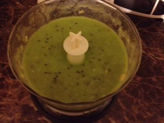 Режем киви и добавляем к бананам в блендер.