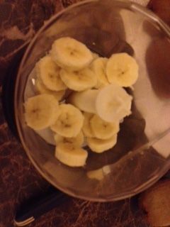 Режем банан и кладем в блендер.