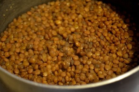 Чечевицу отварить до мягкости согласно инструкции на упаковке.