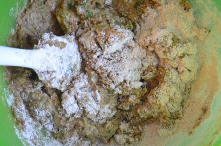 Добавляем муку и размешиваем до однородности.