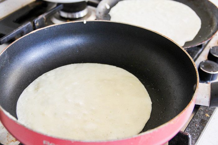 В разогретой сковороде выпекаем блинчики.