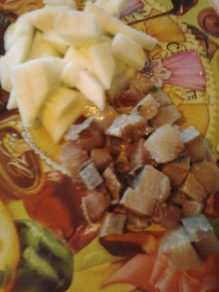 Готовим соус: укроп мелко нарезаем, смешиваем с майонезом (кто не любит майонез, можно использовать сметану). формируем салат. На дно бокала или стакана выкладываем немного тыквы, сельди, затем слой лука, яблок и последним слоем снова тыква. Поливаем все соусом и украшаем веточкой укропа.